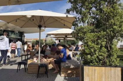 Base is already better known than lupine. But, incredible as it may seem, it’s not as long as that. Whenever an afternoon is expected to be clear and highly photogenic, few are those who resist sitting on the wooden terrace, full of sofas and high tables, order a drink and give two fingers of conversation.