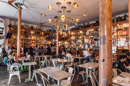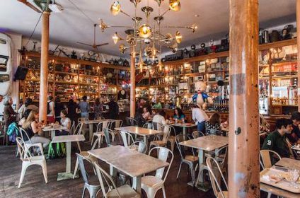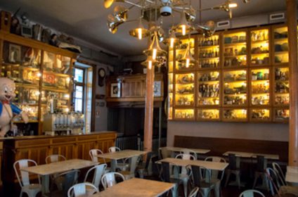 Sharing the same name as its street, Galeria de Paris was once a warehouse selling fabrics. The counters where the products were shown to costumers are now used to serve food, and the shelves behind them are now filled with old objects such as toys, jars, clocks, radios, and others. At night the tables are lighted by candles, which gives them a cozy and intimate ambiance. Galeria de Paris is a good place to start your night at.
